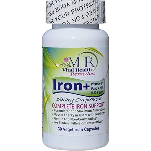 Iron+ with Vitamin C, FOLIC Acid, B-12 & ZINC Preservative-Free, Gentle and Non-constipating Formulated for Maximum Absorption. 30 Veggie caps – Vital Health Remedies