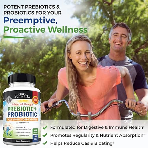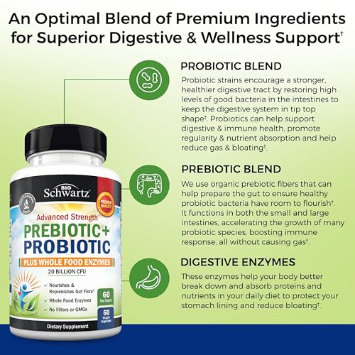 Helps support digestive health: BioSchwartz’s prebiotic + probiotic 60 count mixes the best of both worlds in order to help your digestive tract flourish! The prebiotic can act as a fertilizer for the probiotic which helps to promote the good bacteria in your intestines in order to improve the function of your digestive system