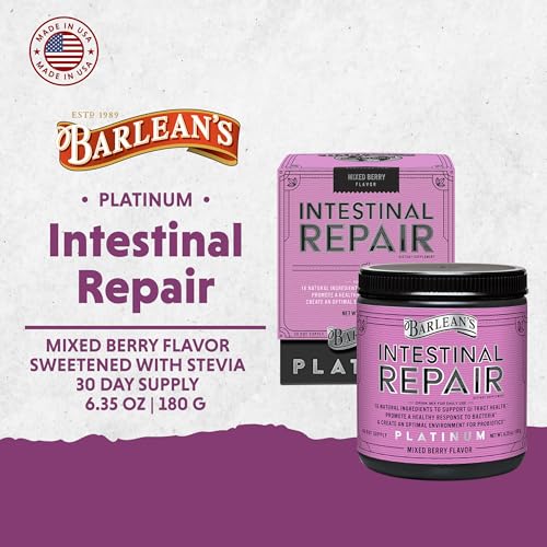 GUT HEALTH SUPPLEMENT: Barlean’s Intestinal Repair is formulated to soothe irritation of the gatrointestinal tract, support healthy digestive membranes, and assist the cells lining the intestinal wall for healthy digestion. Non-GMO, sugar-free, gluten-free