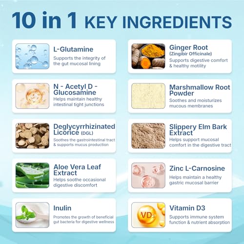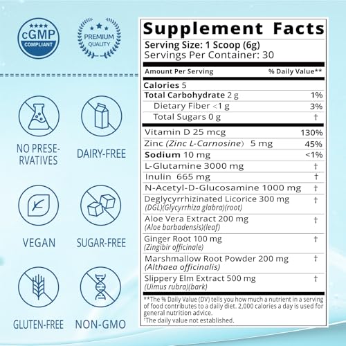Advanced Gut Health Support – Our supplement features a scientifically formulated blend with 3,000mg L-Glutamine, Deglycyrrhizinated Licorice (DGL), Marshmallow Root, and N-Acetyl Glucosamine. These key nutrients work synergistically to support healthy gut barrier integrity, promote mucosal lining health, and maintain intestinal wall tight junctions for optimal digestive health.
