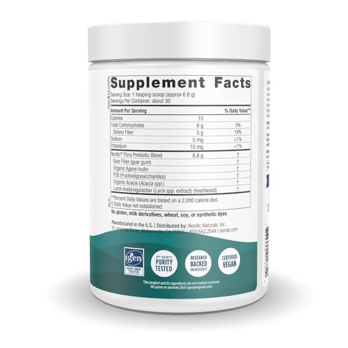 Nordic Naturals Nordic Flora Prebiotic Powder, 204 Grams – Unflavored Prebiotic Powder – 30 Servings