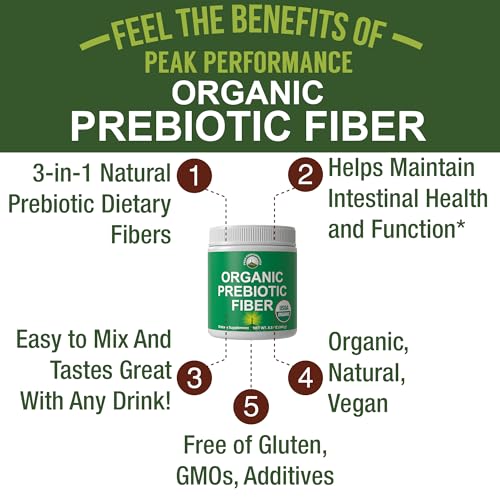 Organic Prebiotic Fiber 3-in-1 Vegan Powder for Gut Health. USDA Organic Raw Whole Food Plant Based Prebiotics Digestive Supplement with Organic Inulin (Jerusalem Artichoke), Acacia Fibers, SunFiber