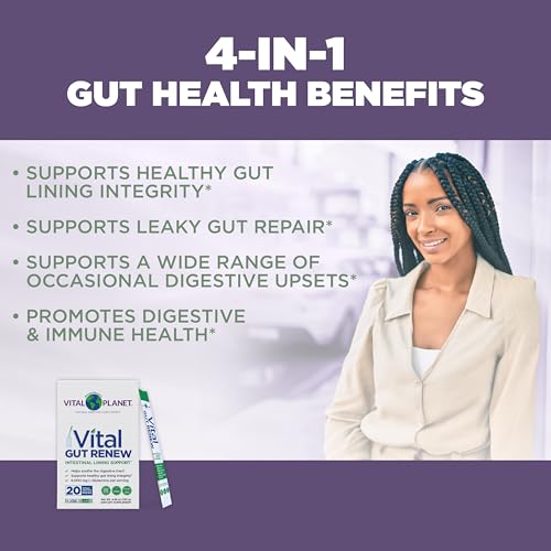 Advanced Leaky Gut Support – Vital Gut Renew is an advanced formula to support leaky gut repair, promote healthy gut lining integrity, and help soothe the digestive tract. Expertly formulated, it contains key ingredients known to support gut lining health: 6,000 mg L-Glutamine, up to 2x more than leading gut lining support formulas, Organic Aloe Vera, N-Acetyl D-Glucosamine, Organic Marshmallow root, Organic Ginger root, and DGL (Deglycyrrhizinated) Licorice root extracts.