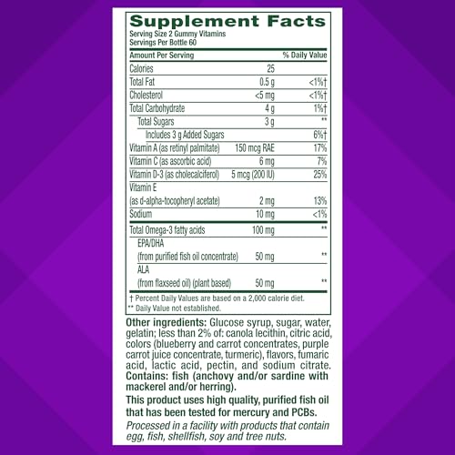 Vitafusion Omega-3 Gummy Vitamins, Berry Lemonade Flavored, Heart Health Vitamins(1) With Omega 3 EPA/DHA and Vitamins A, C, D and E, America’s Number 1 Vitamin Brand, 60 Day Supply, 120 Count