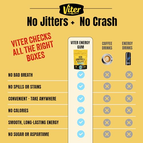 Viter Energy 60mg Caffeine Gum (Peppermint Flavor, 30 Pieces) – Sugar Free, Vitamin B3, B6, B9, B12, Zero Calories, Caffeinated Energy Chews, Nootropic Focus Supplement for Men & Women
