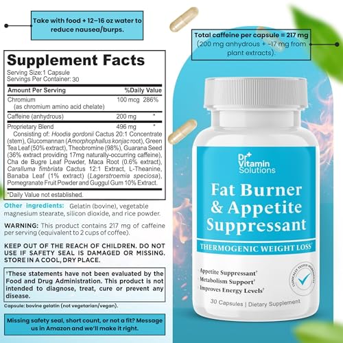 Effortless Fat-Burning Support: Simplify your weight loss journey with Dr. Vitamin’s fat burner and appetite suppressant supplements. With Green Tea Extract and Guarana, accelerate your body’s conversion of stored fat into energy, promoting efficient calorie burning.