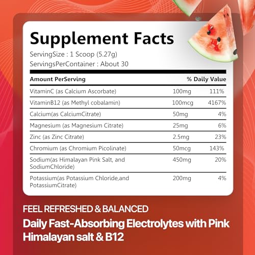 Rosabella Electrolyte Drink Powder – Watermelon – Sugar-Free Hydration Drink Mix – Electrolytes Powder with Sodium, Potassium, Magnesium, Calcium – Travel Jar – 30 Servings (5.6 oz)