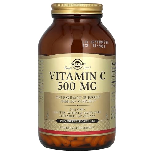 Solgar Vitamin C 500 mg, 250 Vegetable Capsules – Antioxidant & Immune Support – Overall Health – Supports Healthy Skin & Joints – Non-GMO, Vegan, Gluten Free, Kosher – 250 Servings